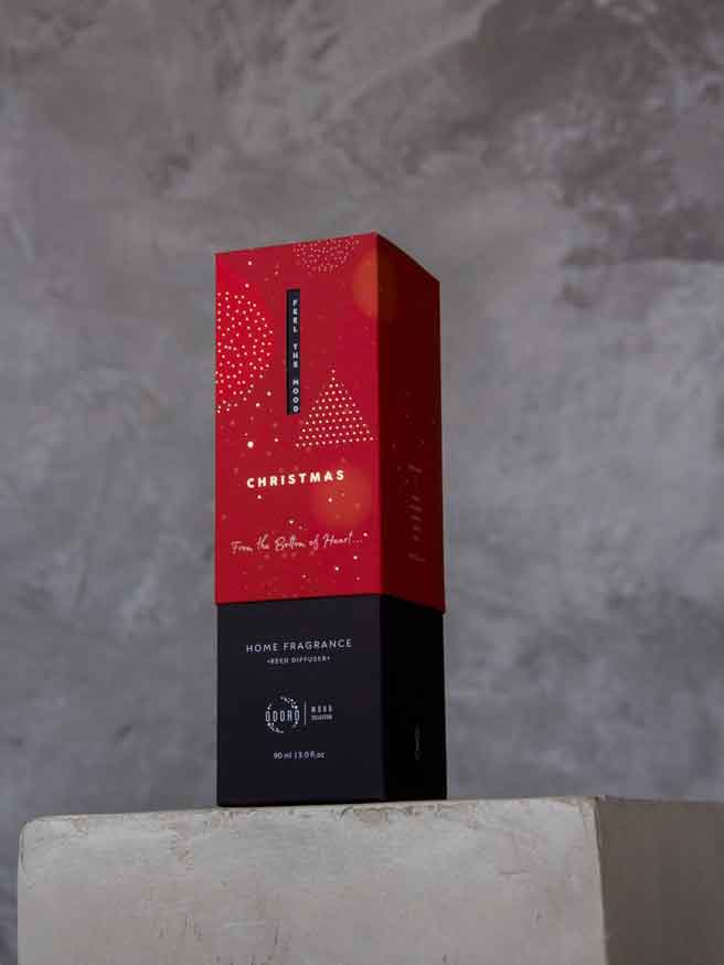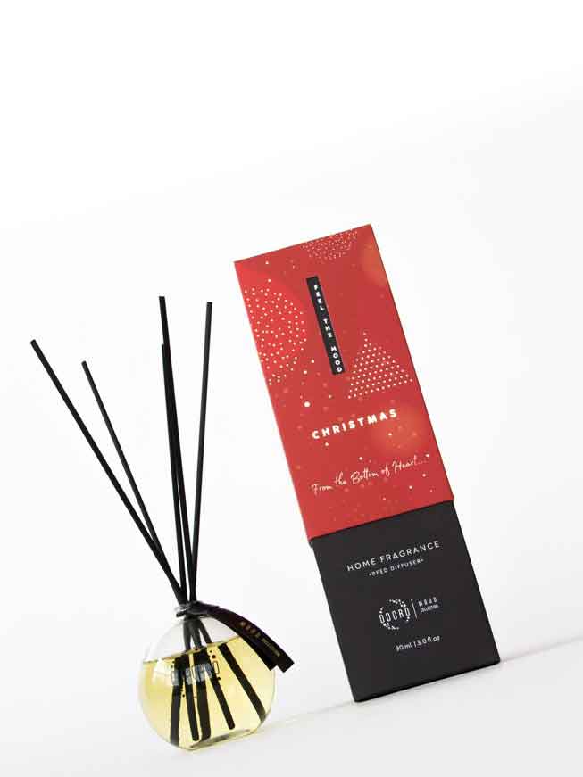 Lakásparfüm christmas illatjegyei a narancs, a fahéj, a sütemény, a vanília, és a szegfűszeg. Lakásparfüm csomagolása design díjas illatosított doboz. A parfüm üvegének kinyitása nélkül is jól érezhető az illathatás, már a csomagoláson át. A doboz teteje precízen illeszkedik, az orrunk már a kinyitásnál is megtapasztalhatja a fenséges aroma-jelleget. Az illat eredete – Franciaország.